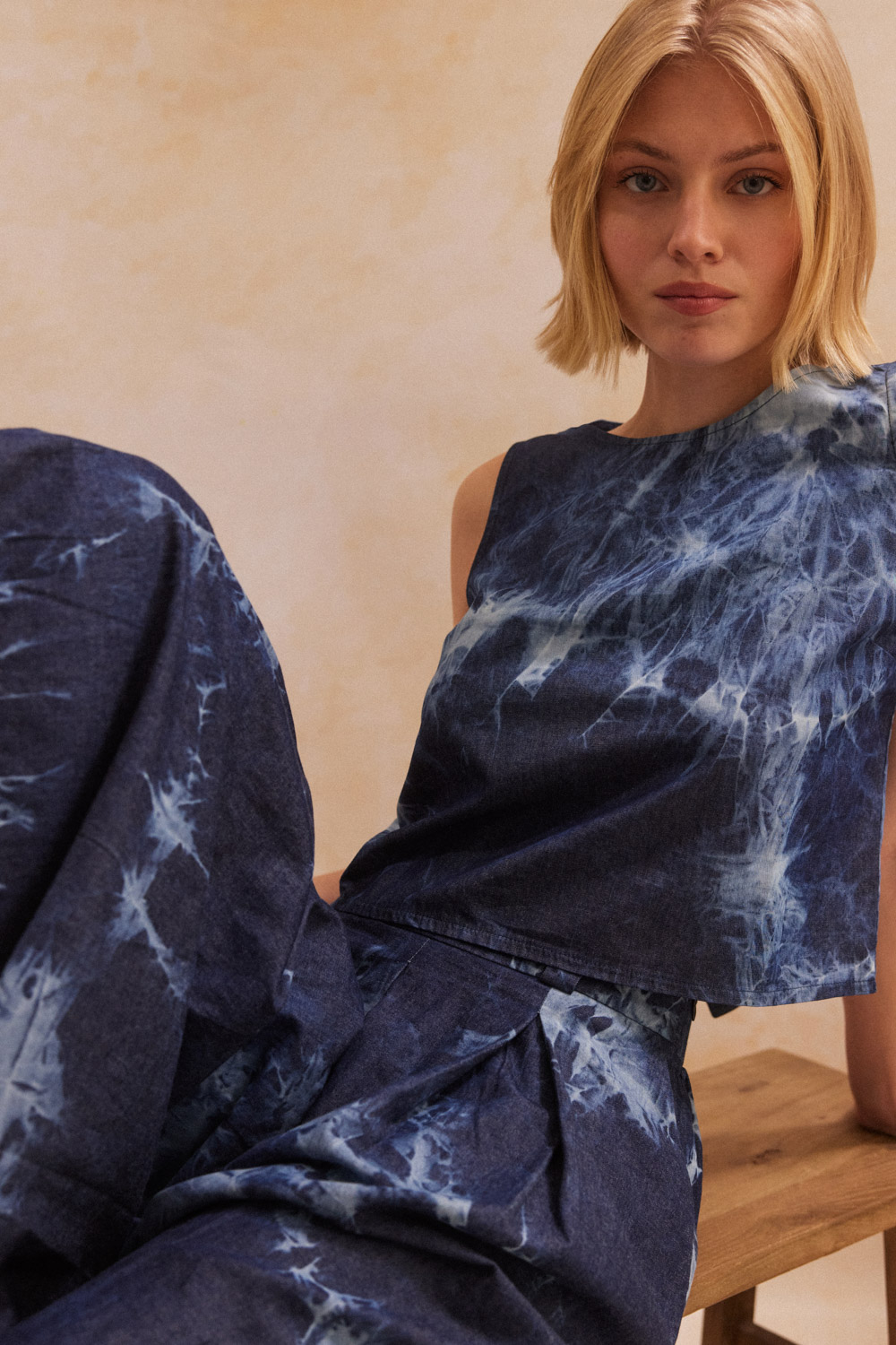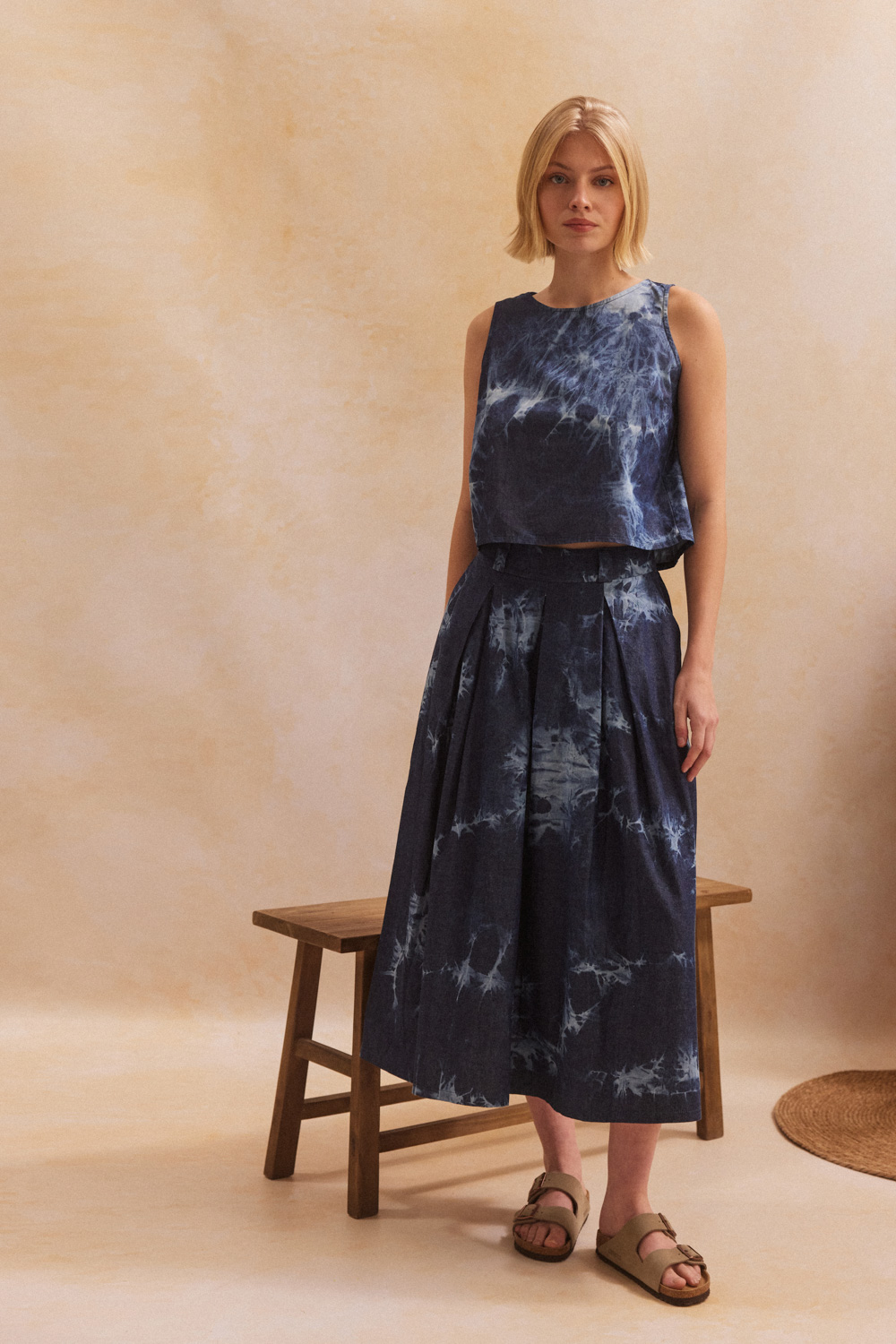 - ΦΟΥΣΤΑ ΑΠΟ ΒΑΜΒΑΚΕΡΟ DENIM ΥΦΑΣΜΑ ΜΕ TIE DYE ΕΦΕ ΓΙΑ ΜΙΑ ΜΟΝΑΔΙΚΗ ΜΟΝΤΕΡΝΑ ΕΜΦΑΝΙΣΗ