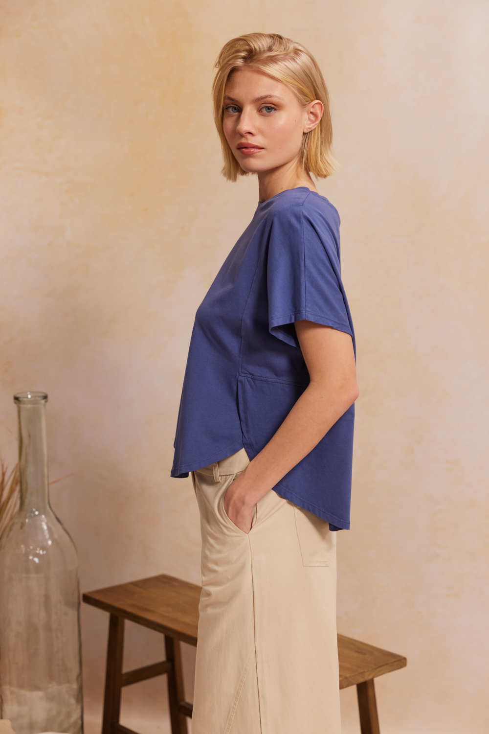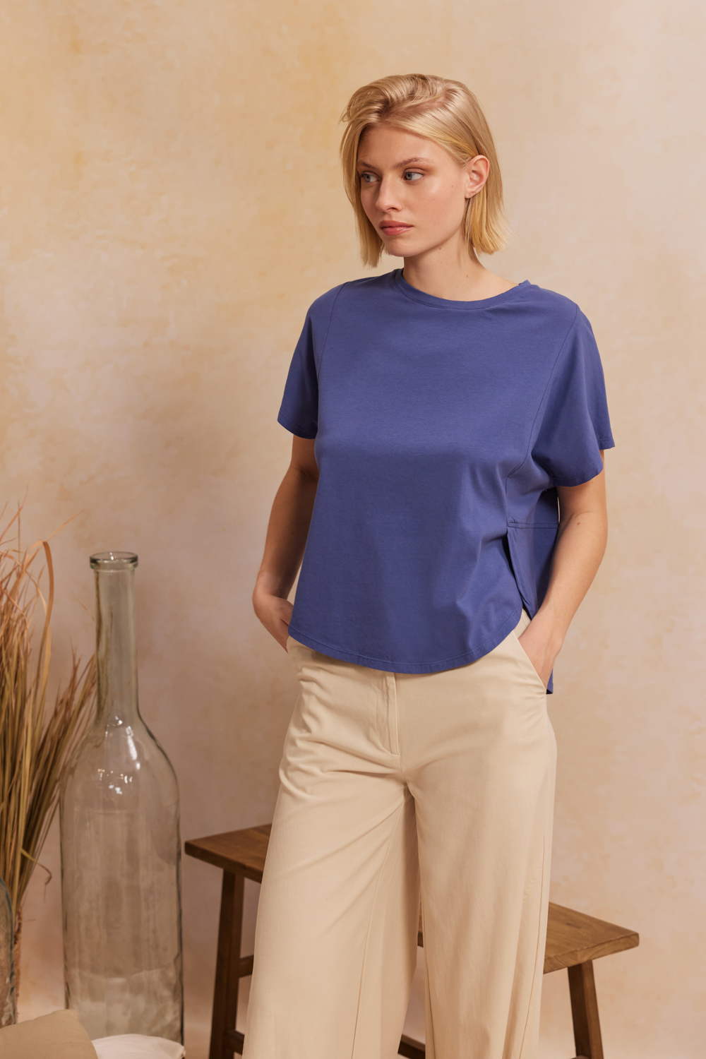 CAROL ΜΠΛΟΥΖΑ ΣΧΕΔΙΑΣΤΙΚΗ ΜΕ ΣΤΡΟΓΓΥΛΗ ΛΑΙΜΟΚΟΨΗ ΚΑΙ ΑΣΥΜΜΕΤΡΟ ΤΕΛΕΙΩΜΑ ΠΡΟΙΟΝ ECO-CONSCIOUS