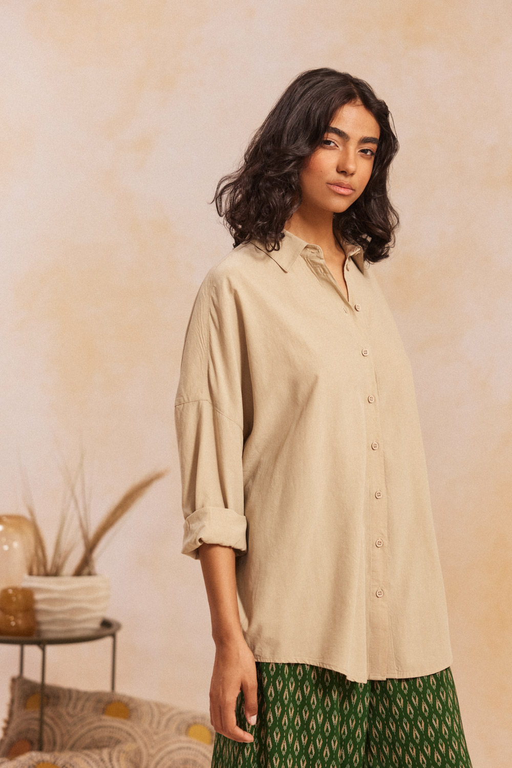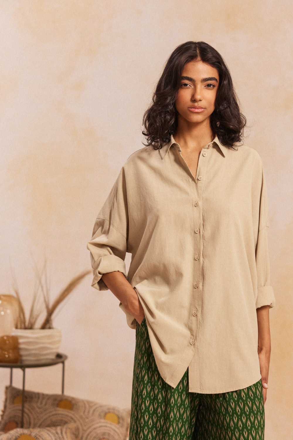 - Πουκάμισο με μακρύ μανίκι με κουμπιά στο τελείωμα