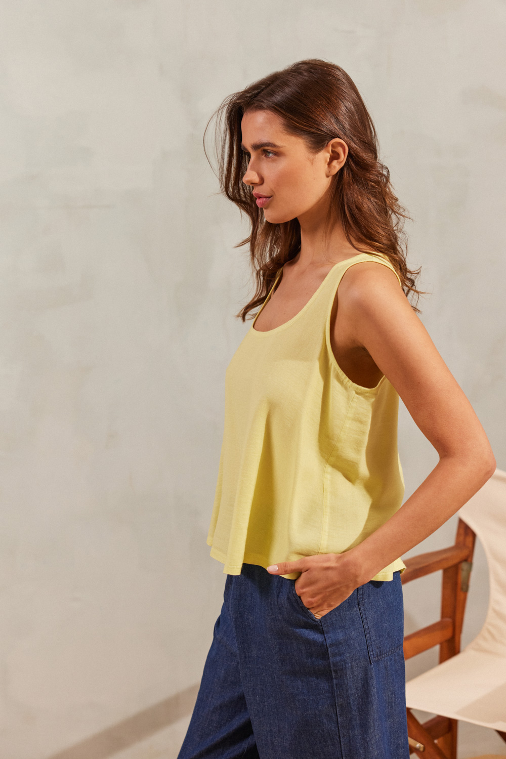 - ΑΜΑΝΙΚΟ ΤΟΠ ΑΠΟ ΜΕΙΓΜΑ 55% VISCOSE ΚΑΙ 45% COTTON ΜΕ ΑΠΑΛΗ ΑΦΗ ΚΑΙ ΔΡΟΣΕΡΗ ΥΦΗ