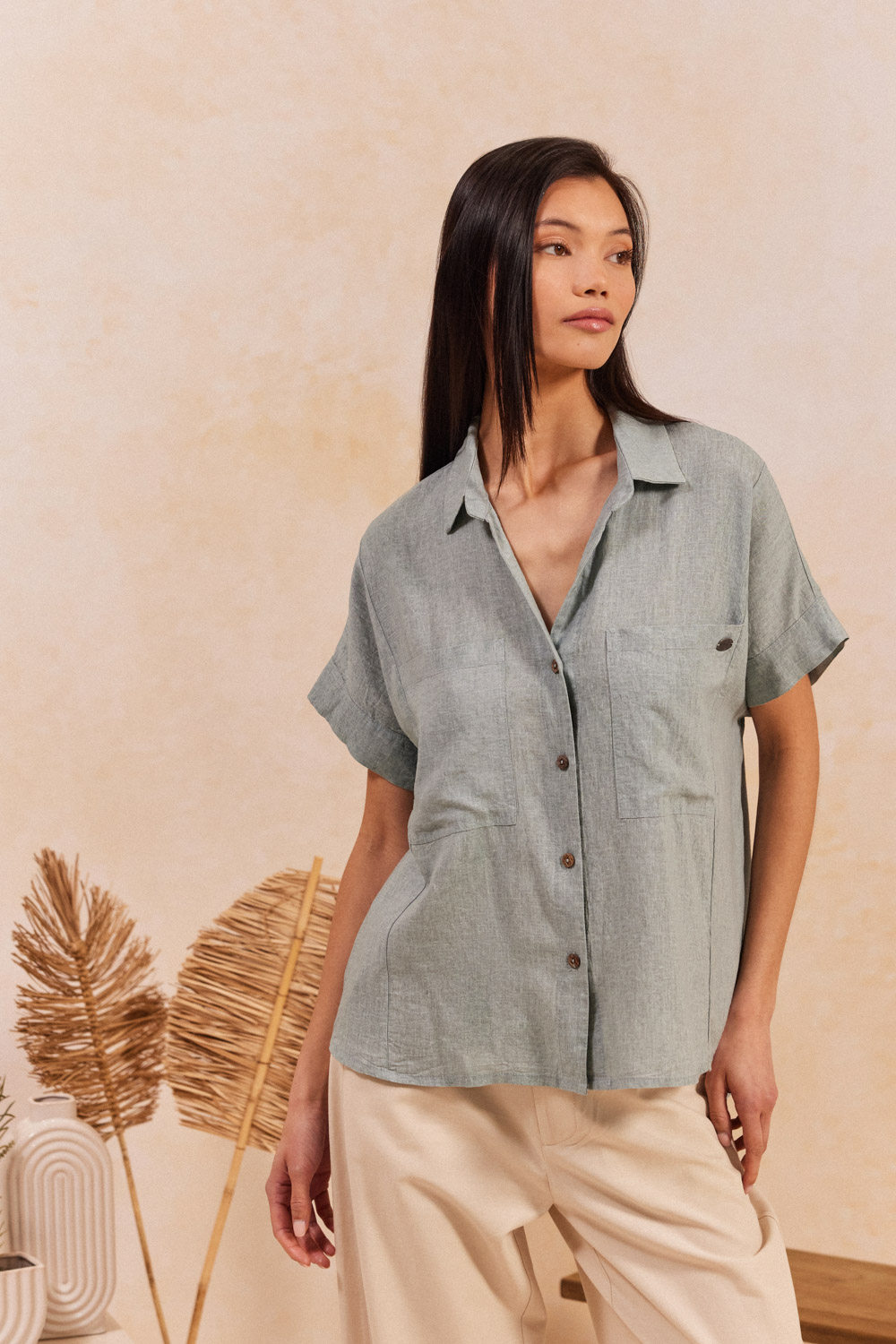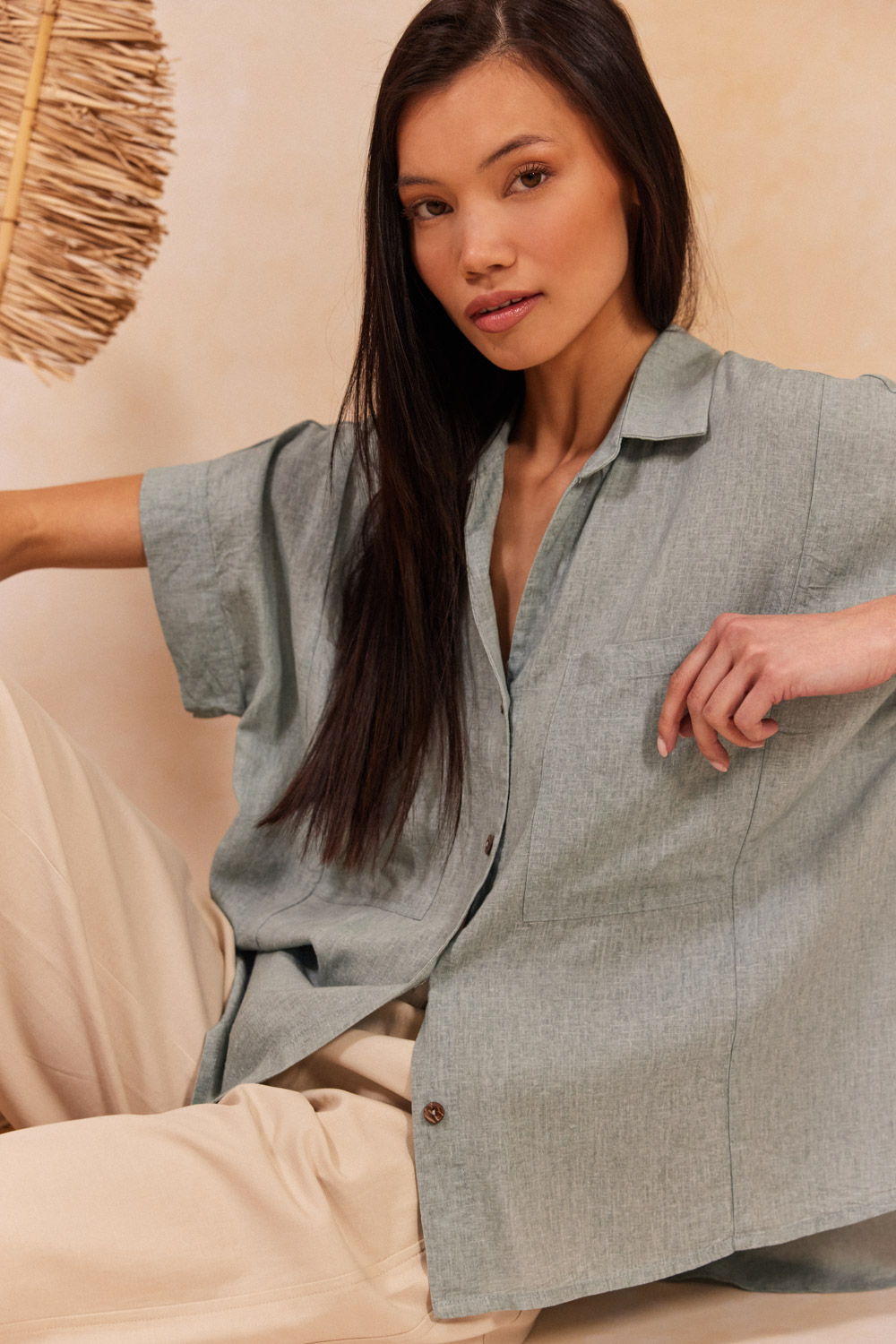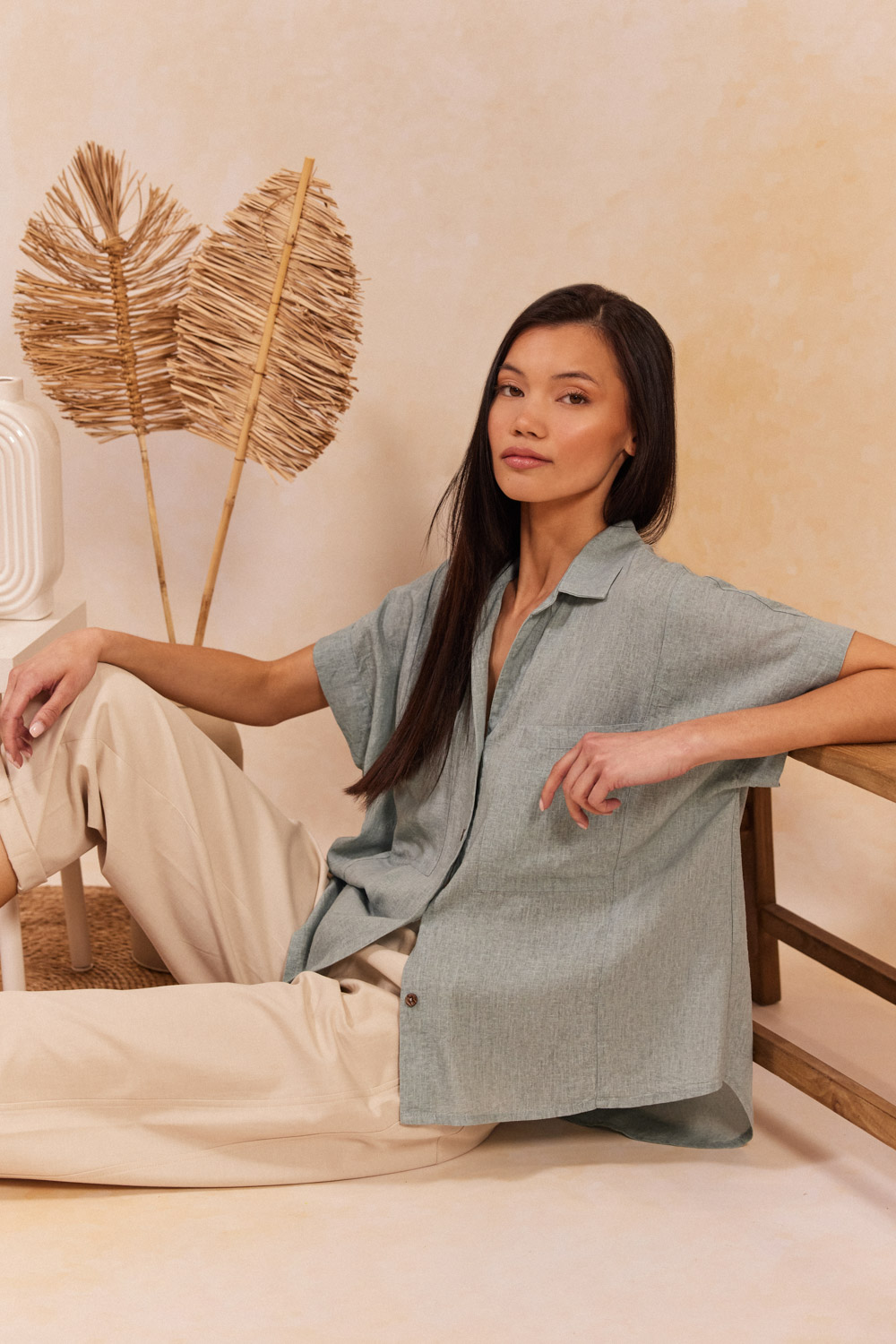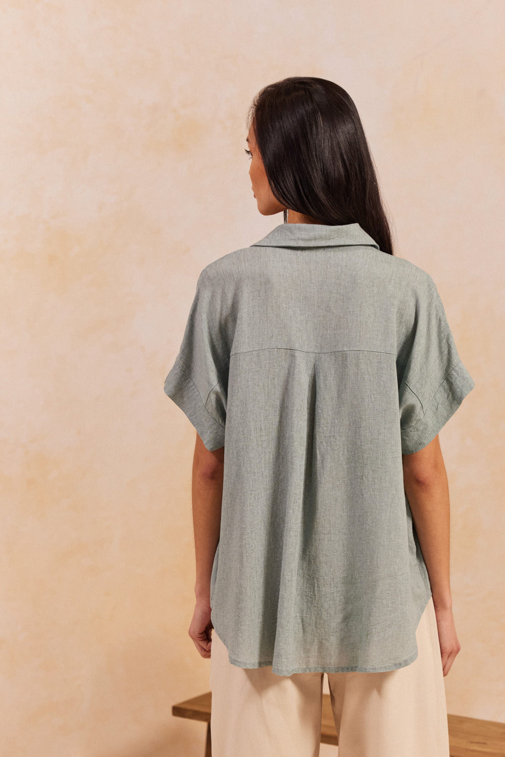 - ΤΟ ΥΦΑΣΜΑ ΑΠΟ VISCOZE ΚΑΙ LINO ΕΞΑΣΦΑΛΙΖΕΙ ΑΝΕΣΗ ΕΝΩ Ο ΩΜΙΤΗΣ ΚΑΙ Η ΚΟΥΦΟΠΙΕΤΑ ΣΤΟ ΠΙΣΩ ΜΕΡΟΣ ΕΝΙΣΧΥΟΥΝ ΤΗΝ ΑΕΡΙΝΗ ΚΑΙ ΕΛΑΦΡΙΑ ΓΡΑΜΜΗ ΤΟΥ ΡΟΥΧΟΥ