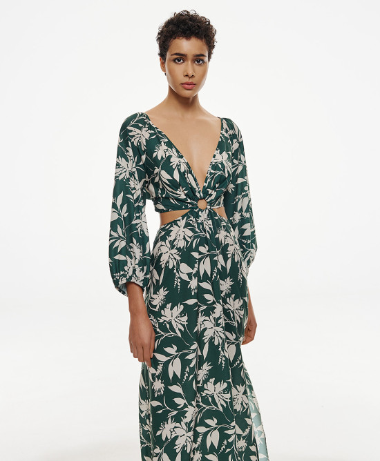 FLORAL ΜΑΞΙ ΦΟΡΕΜΑ ΜΕ ΑΝΟΙΧΤΗ ΠΛΑΤΗ ΜΕ ΔΕΣΙΜΟ