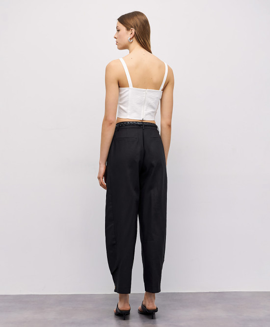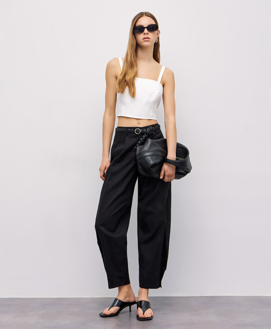 ΨΗΛΟΜΕΣΟ SLOUCHY ΠΑΝΤΕΛΟΝΙ ΜΕ ΠΙΕΤΑ ΚΑΙ ΚΟΥΜΠΙ ΣΤΟ ΤΕΛΕΙΩΜΑ