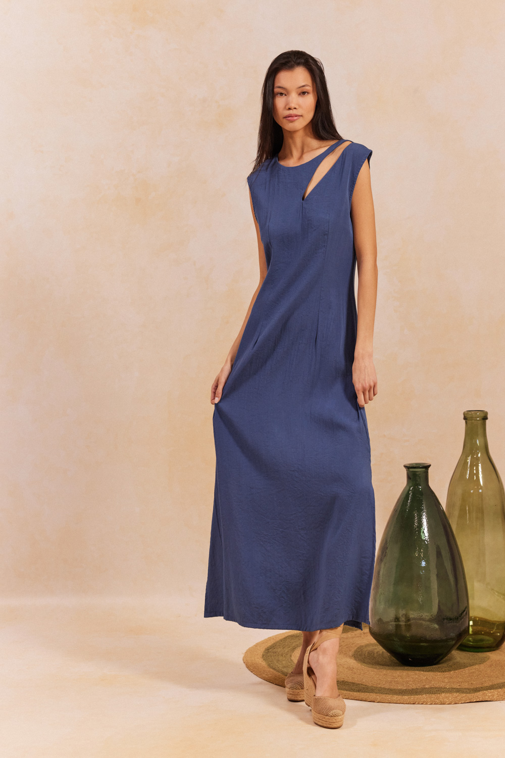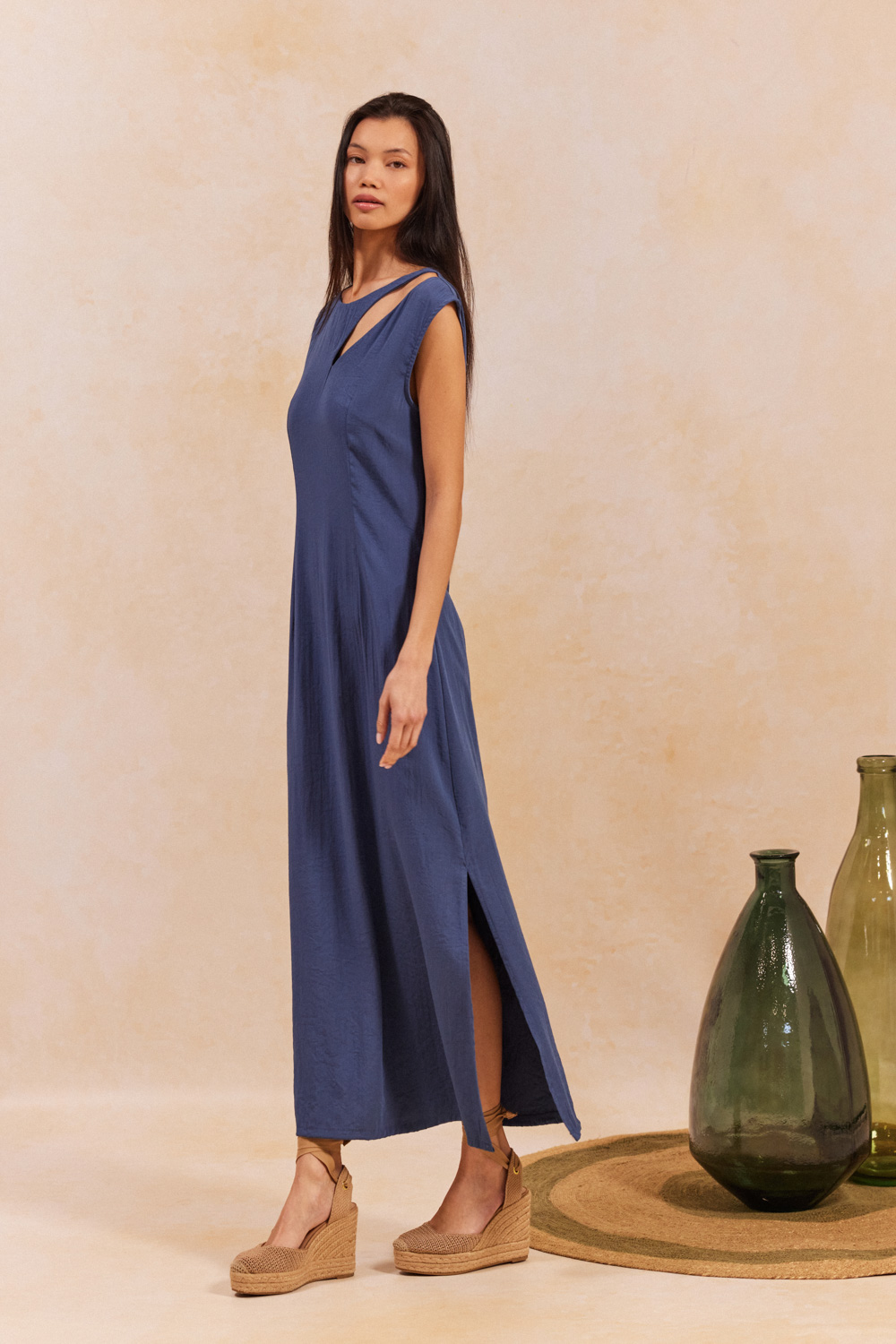 SYBILLE ΦΟΡΕΜΑ MIDI ΑΜΑΝΙΚΟ ΜΕ ΑΝΟΙΓΜΑ ΣΤΟΝ ΕΝΑΝ ΩΜΟ